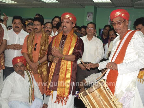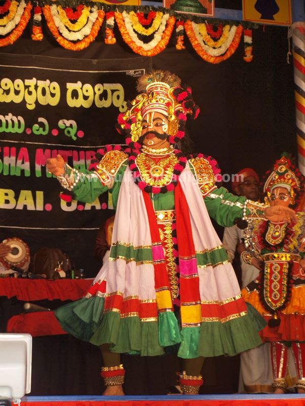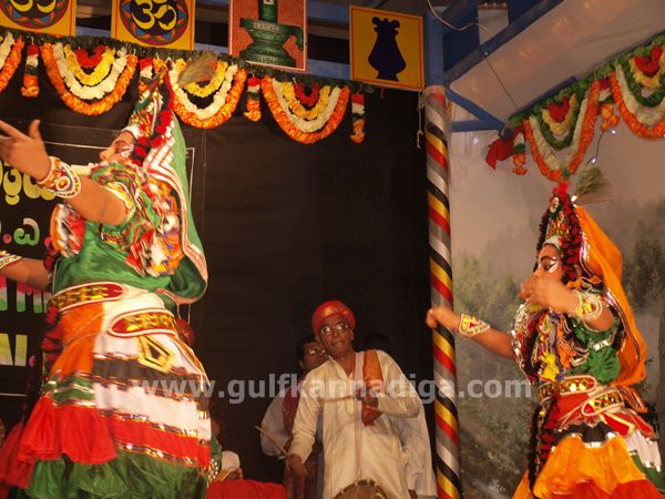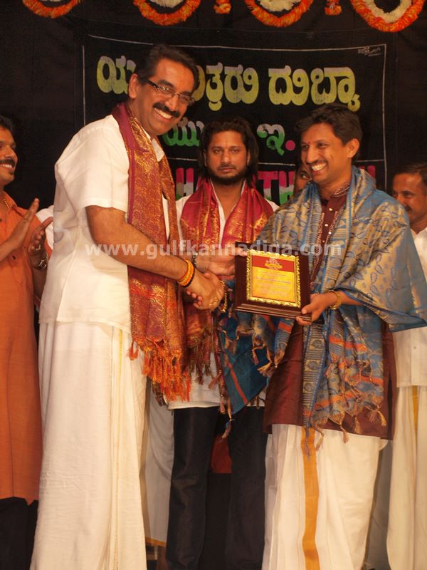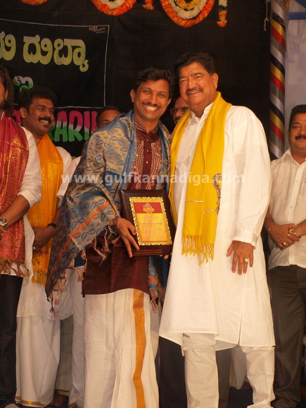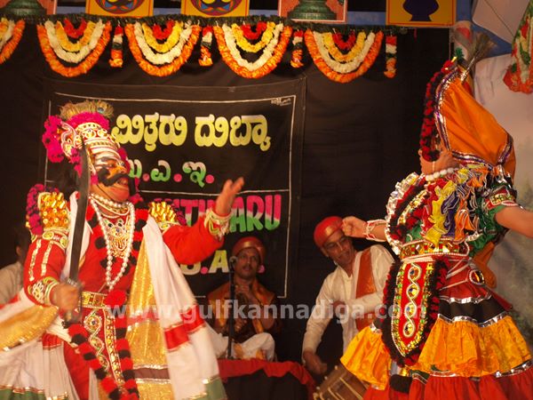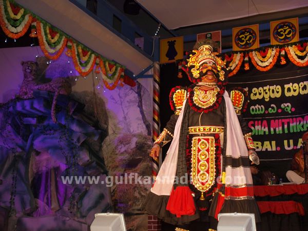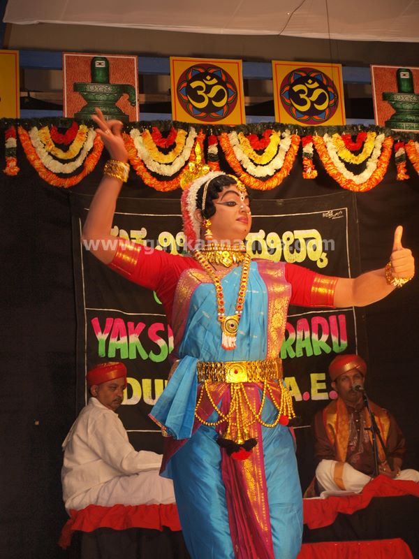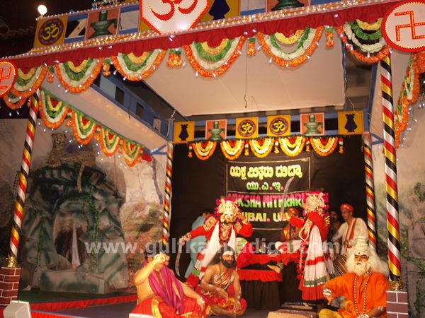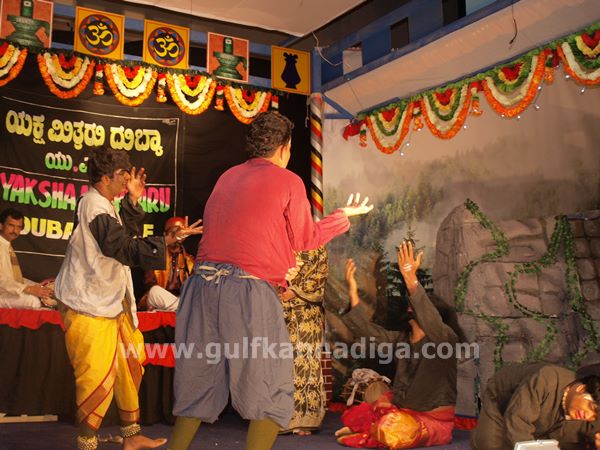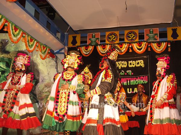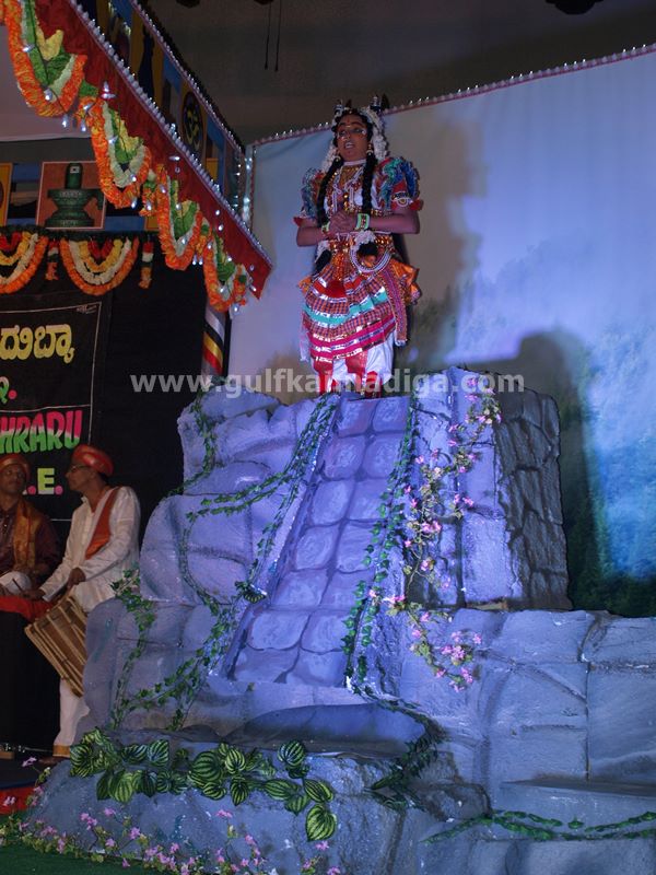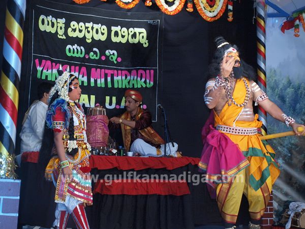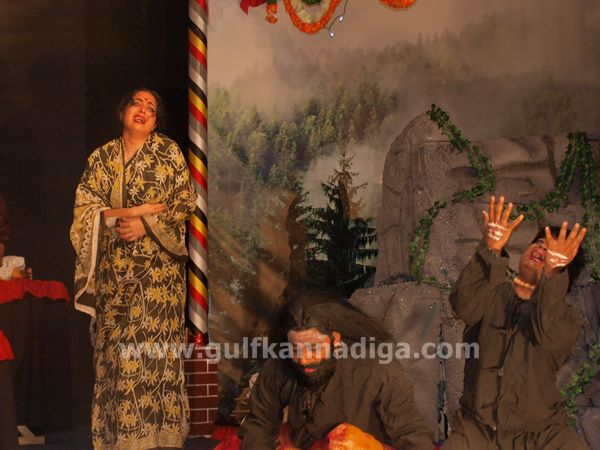 If the programme was commenced with the traditional Devendra royal durbar, Sugandhi/Yashomathi has been enacted by Shree Deepak Rao Pejavara, who has been especially flown into Dubai as a guest artist for the occasion from India. The Versatile Deepak Rao with his brilliant act, varied actions, expressions, dance and flawless, continuous flow of deliberations lured the hearts of thousands of expatriate community from the coastal region in particular and Kannadigas in general gathered in the auditorium.