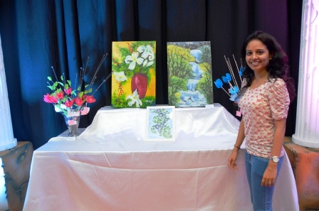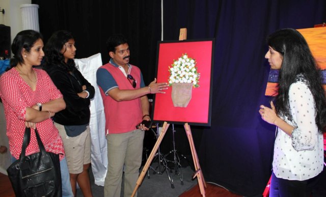 The exhibition showcased a wide variety of Oil and acrylic paintings, handmade Flowers and bouquets and Picture frames created through paper quilling work. The content reflected rich images of nature, and daily life captured by the artistes vision in a tapestry of colour and textured hues.