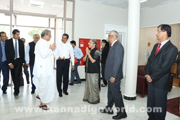 Dr. D. Veerendra Heggade, the Dharmadhikari (Administrator) of the historic Dharmasthala Temple in Dakshina Kannada, Karnataka, India visited Gulf Medical University (GMU) campus in Ajman UAE, on 7th November, 2015. Dr. Heggade was accorded a warm welcome by Mr. Thumbay Moideen – Founder President of the Board of Governors of GMU, Prof. Gita Ashok Raj – Provost of GMU, Mr. Akbar Moideen Thumbay – Vice President of the Healthcare Division of Thumbay Group, the Deans of the colleges of GMU, and the members of the administrative team of Thumbay Group.