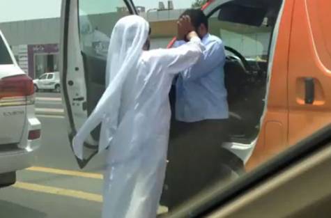 In the video, an Asian bus driver is seen cowering as he is being beaten by the ‘igal’ or a headband worn by Arabs.