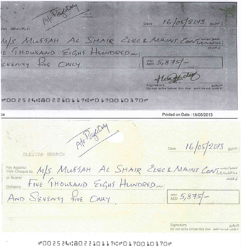 The signature seemed to have vanished. “Normally, we get several cheques that we deposit in our account. Recently, I got a call from bank officials, saying there is no signature on a cheque deposited for collection. What puzzled me was the fact that there indeed was a signature on the same cheque when it bounced a month ago, and a photocopy of the cheque returned by the same bank a few weeks ago clearly shows the signature,” Job Mathew, sales and service manager of the beneficiary firm, Muftah Al Shair Electrical and Mechanical Contracting, told Emirates 24|7.