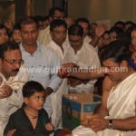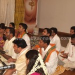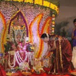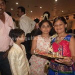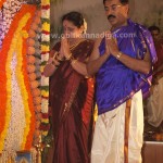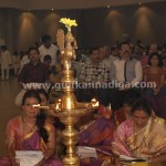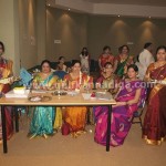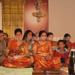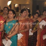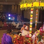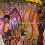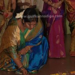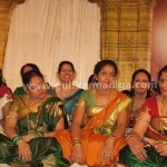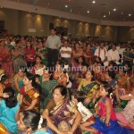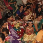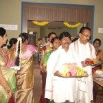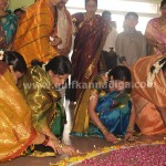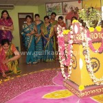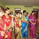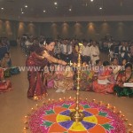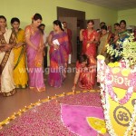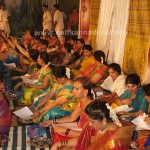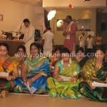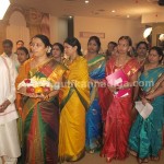 All the ladies assembled near the Tulsi Vrindavana, specially erected for the occasion outside the auditorium and after performing some rituals by the purohit in front of the specially made Tulsi Vrindavana, ladies in new costumes entered the auditorium in procession with Jyothi (lamps) and chanted Vishnu Ashnothara Shathanamavali.