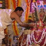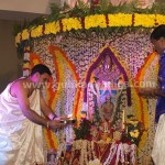 Shree Mahalxmi Astaka, Ayigiri Nandini and Shree Laxmi Astothara Archanas were held by the ladies. After the Mahapooja Brahmin aaradhane, Kannikaradheane for unmarried junior girls and sumangale items were distributed amongst the ladies.