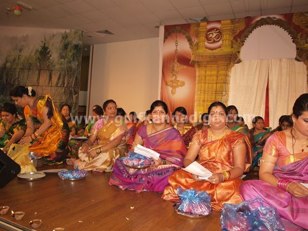 The priest Raghu Bhat and his friends led the puja celebrations and prayed Goddess Varamahalxmi bless each one with health, wealth and peace in this world. Couple Ganesh Rai also offered puja on behalf of all.