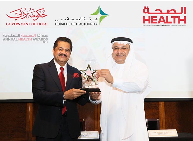 A Memorandum of Understanding was signed at the press conference, between Dubai Health Authority (DHA) and HEALTH Magazine, to support and promote Health Awards 2018. The MoU was signed by H.E. Humaid Al Qutami, Chairman of the Board – Dubai Health Authority representing DHA and Mr. Thumbay Moideen, Founder President of Thumbay Group and publisher of HEALTH Magazine, representing HEALTH Magazine.