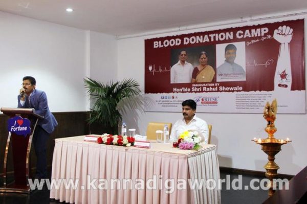 Mr. Praveen Shetty, Chairman – Fortune Group of Hotels warmly welcomed Shri Rahul Shewale. Speaking on the occasion, he firstly wished “Ramadan Kareem” to everyone and thanked the executive committee members of Karnataka NRI Forum, his friends, well-wishers and the fortune staff members for coming in large numbers and making this blood donation camp successful as it is the necessity for the global community to indulge more and more in community service.