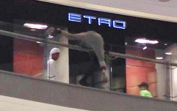 Dubai Mall’s first floor height is almost equal to that of a four-storey building. Picture of the attempted jump was published on the social networking web site Twitter.