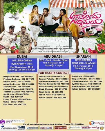 The movie is all set for release on 2nd November in Dubai, 9th November in Sharjah & 16th November, 2018 in Abu Dhabi. The Pamphlet posted herein has the time and contact details for booking the seats.