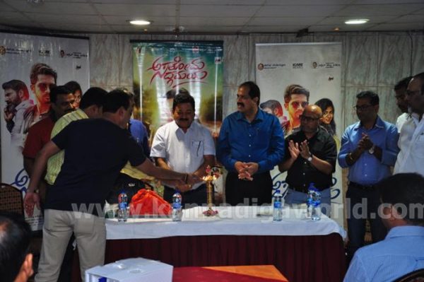 Producer Ashwin later welcomed all the guests & audience and briefed on his journey from student to builder promoter and then into his venture in film making. He said this long journey gave him lot of experience into reality. He shared some of his past experience back in Moodabidri where he belongs to especially about his education tenure where and how he completed his technical qualification which has some connections to the story of the movie he has now produced. This inspired him to produce the movie and is happy that he is presenting a movie which has a beautiful message for the audience which is relevant in the current situation. Technically this movie is very well made and appreciated wherever released, he added. He said that obviously he has produced this movie to make money not for himself but if it does; it will provoke him to produce more movies in the future which will ultimately give entertain for all our Kannadigas. He said that there are lot of budding artistes in our Mangalorean circles whom we need to support and said he is happy to introduce Pradeep Barboza & Deepak Paladka to Sandalwood for the first time though they have already acted and well-known in Coastalwood movies.
