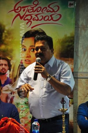 Utham then requested Walter Nandalike of Daijiworld to speak about the movie he has witnessed during the Mangalore release and share his views. Walter started humorously and then said that normally he seldom watches movie in the theaters and even if he does he will not sit long and will come out before the interval itself. Asathoma Sadgamaya made him sit and watch till the end mainly because of the grip in suspense revealing. He said that the movie created good inquisitiveness especially past interval and said it is a pure combination of technicality, good music, songs and story.