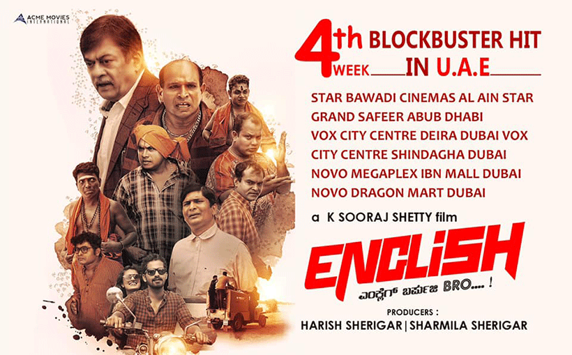 “ಇಂಗ್ಲಿಷ್”-ತುಳು ಸಿನಿಮಾ : ಗಲ್ಫ್ ರಾಷ್ಟ್ರಗಳಲ್ಲಿ 4ನೇ ವಾರ ಕೂಡ ಭರ್ಜರಿ ಪ್ರದರ್ಶನ – ದುಬೈಯಲ್ಲಿ ಹೌಸ್ ಫುಲ್