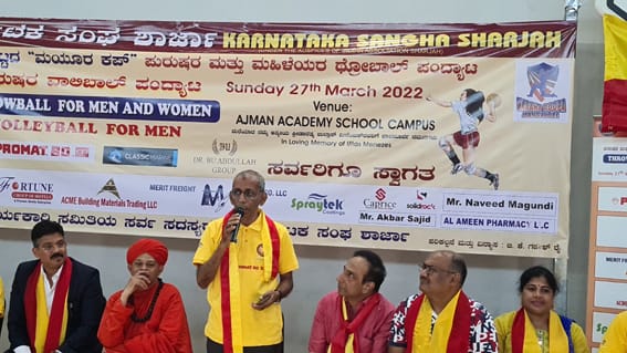 ದುಬೈ: ಕರ್ನಾಟಕ ಸಂಘ ಶಾರ್ಜಾದ ಆಶ್ರಯದಲ್ಲಿ ವಿಶ್ವ ರಂಗ ದಿನ ಹಾಗೂ ಪ್ರತಿಷ್ಠಿತ “ಮಯೂರ ಕಪ್” ಮಹಿಳೆಯರ ಮತ್ತು ಪುರುಷರ ಥ್ರೋಬಾಲ್ ಹಾಗೂ ಪುರುಷರ ವಾಲಿಬಾಲ್ ಪಂದ್ಯಾಟಗಳು ಇತ್ತೀಚೆಗೆ ಆಜ್ಮಾನ್ ಅಕಾಡೆಮಿ ಸ್ಕೂಲ್ ಕ್ರೀಡಾಂಗಣದಲ್ಲಿ ವಿಜೃಂಬಣೆಯಿಂದ ನಡೆಯಿತು.