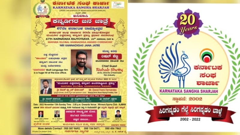 ಯುಎಇ: ಕರ್ನಾಟಕ ಸಂಘ ಶಾರ್ಜಾದ ಆಶ್ರಯದಲ್ಲಿ 67ನೇ ಕರ್ನಾಟಕ ರಾಜ್ಯೋತ್ಸವ ಶಾರ್ಜಾ ಕರ್ನಾಟಕ ಸಂಘದ 20ನೇ ವಾರ್ಷಿಕೋತ್ಸವ ಮತ್ತು ಮಯೂರ ವಿಶ್ವ ಮಾನ್ಯ ಕನ್ನಡಿಗ ಪ್ರಶಸ್ತಿ ಪ್ರದಾನ ಸಮಾರಂಭ 13 ನೇ ನವೆಂಬರ್ ಭಾನುವಾರ 2022, ಮಧ್ಯಾಹ್ನ 3.00 ಗಂಟೆಯಿಂದ ರಾತ್ರಿ 8 ಗಂಟೆಯವರೆಗೆ, ವಿನ್ನರ್ಸ್ ಸ್ಪೋರ್ಟ್ಸ್ ಕ್ಲಬ್, ಅಜ್ಮಾನ್ ನಲ್ಲಿ ನಡೆಯಲಿದೆ. ಈ ಬಾರಿಯ ವಿಶೇಷ ಆಕರ್ಷಣೆಯಾಗಿ ವಿಶ್ವ ಮೆಚ್ಚಿರುವ “ಕಾಂತಾರ” ಬಹುಭಾಷಾ ಚಿತ್ರದ ಕನ್ನಡಿಗ ನಾಯಕ ನಟ ಮತ್ತು ನಿರ್ದೇಶಕರು ಶೆಟ್ಟಿಯವರು ಸಮಾರಂಭದ ಮುಖ್ಯ ಅತಿಥಿಯಾಗಿ ಪಾಲ್ಗೊಳ್ಳಲಿದ್ದಾರೆ.