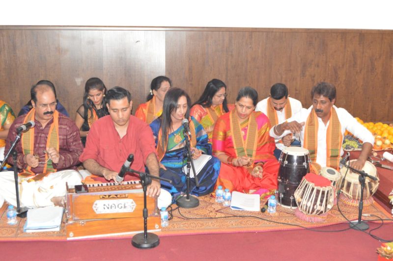 Mean time The team Rajarajeshwari Bhajana Mandali enthralled gathering by rendering devotional bhajans throughout the puja which was a highlight and appreciated by the gathering. Further after the vibrant Mangalaarathi , Prasad and mahaprasad was distributed to all the devotees.
