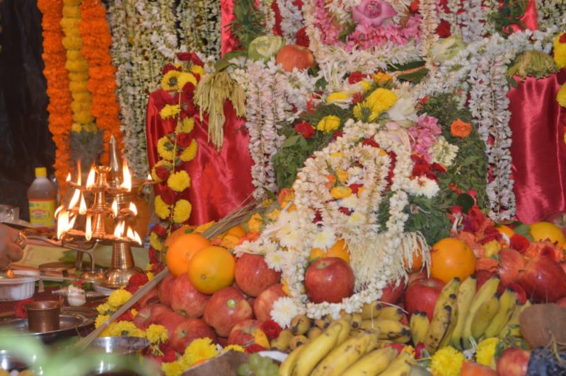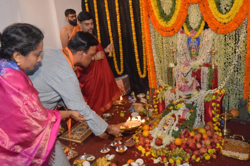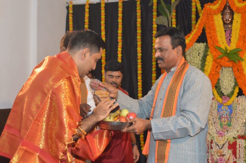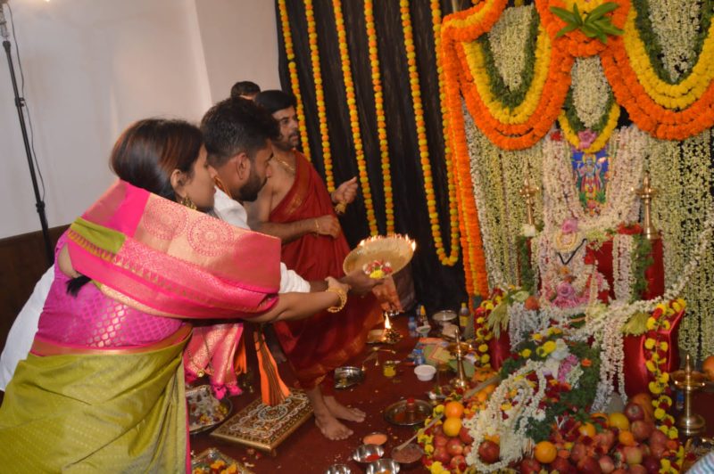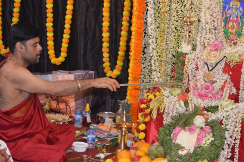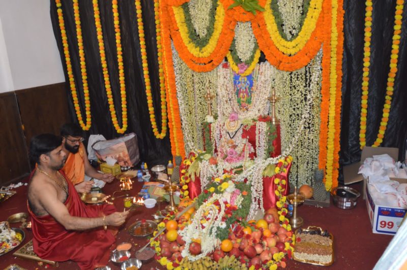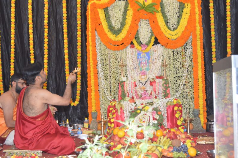 On behalf of the community, Saphalya Seva Sangha Mumbai – President Mr. Srinivas Saphalya & Mrs. Rathika Srinivas and Mr.Sandesh & Mrs. Bharathi Sandesh performed puja vidhi vidhana as per guidance of purohith Raghu Bhatt .