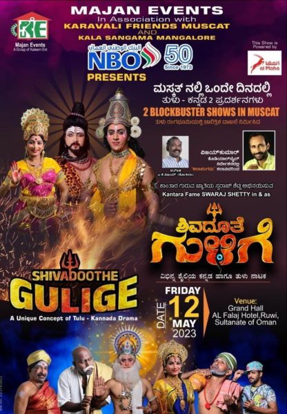 ಮಸ್ಕತ್: ವಿಜಯ ಕುಮಾರ್ ಕೊಡಿಯಾಲಬೈಲ್ ಅವರ ನಿರ್ದೇಶನದ ವಿಭಿನ್ನ ಶೈಲಿಯ ತುಳು ಮತ್ತು ಕನ್ನಡ ನಾಟಕ ದಾಖಲೆ ಸಂಖ್ಯೆಯಲ್ಲಿ ಪ್ರೇಕ್ಷಕರು ನೋಡಿ ಆನಂದಿಸಿದ ‘ಶಿವದೂತೆ ಗುಳಿಗೆ’ ನಾಟಕವು ಮೇ.12ರಂದು ಮಸ್ಕತ್ ನ ರೂವಿಯ ಅಲ್ ಫಲಾಜ್ ಹೋಟೆಲ್ ನ ಗ್ರಾಂಡ್ ಹಾಲ್ ಅಡಿಟೋರಿಯಂನಲ್ಲಿ ಪ್ರದರ್ಶನಗೊಳ್ಳಲಿದೆ.