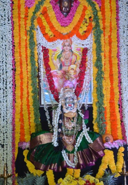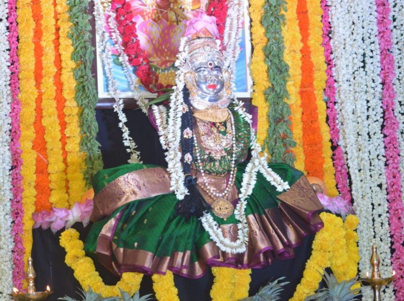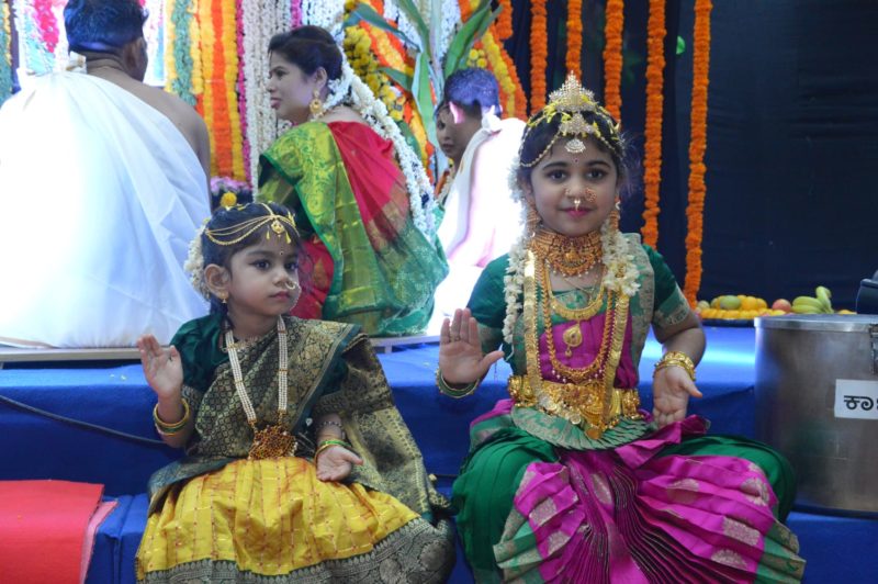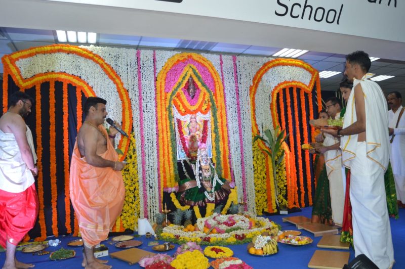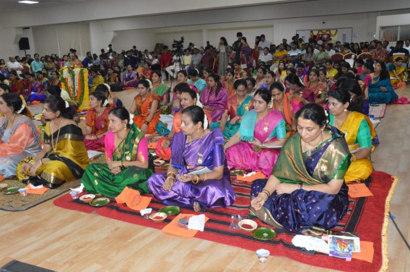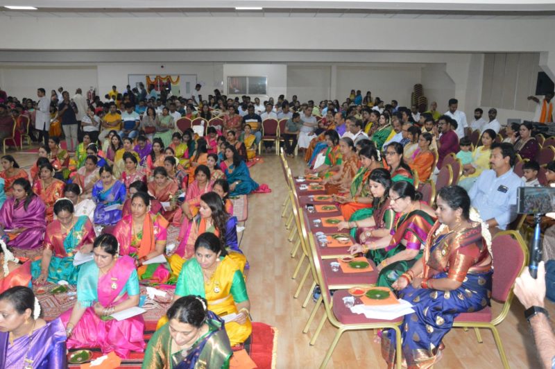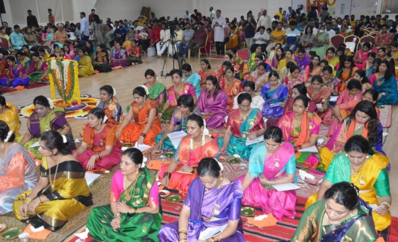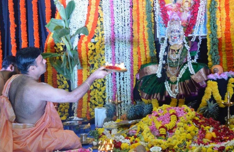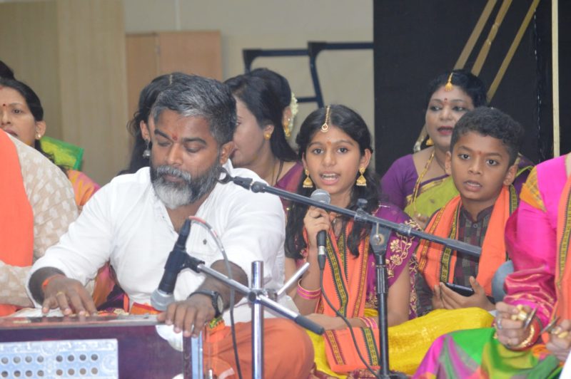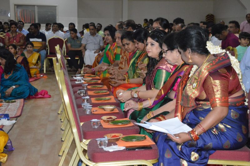 Puja was further followed by Lakshmi Ashtothara, Sumangali aaraadhane, Braahmana aaraadhane and Kannika aaraadhane. Further devotional bhajans and nrithya bhajans added more colour to the program. The Puja concluded with the Mahamangalaarathi, and the distribution of Mahaprasadam.