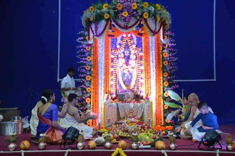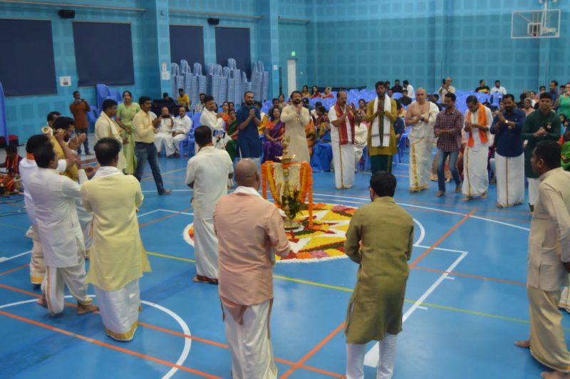ನಗರದ ಅಲ್ ಗುಸೈಸ್ ನ ಇಂಡಿಯನ್ ಅಕಾಡೆಮಿ ಸ್ಕೂಲ್ ನ ಸಭಾಂಗಣದಲ್ಲಿ ಬೆಳಿಗ್ಗೆ ಒಂಬತ್ತರಿಂದ ಮಧ್ಯಾಹ್ನದ ವರೆಗೆ ಪುರೋಹಿತರಾದ ರಘು ಭಟ್ಟರ ಪೌರೋಹಿತ್ಯದಲ್ಲಿ ವಿವಿಧ ವೈದಿಕ ಕಾರ್ಯಕ್ರಮಗಳೊಂದಿಗೆ ನಡೆಯಿತು.