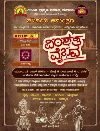 “Sarve Jana Sukhino Bhavantu” Overall, the 20th anniversary celebration of the UAE Brahmana Samaja is set to be a memorable and inclusive occasion, bringing together people from all walks of life to celebrate unity and cultural heritage.