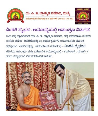 A handy Reference Book title ‘Vipra Sanchaya’ with details of Job, Business, Hobby, Achievement and Contacts of all those Karnataka Brahmans residing in UAE will be unveiled during the program. This will further highlight the significance of this milestone.