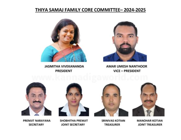President Rajesh Pallikere, proposed former General Secretary Jasmitha Vivekananda as new President of Thiya Samaj Family UAE which was unanimously accepted by all the members.The new core committee members were elected for the year 2024-2028. Amar Umesh Nanthoor was re-elected as the Vice-President , Premjit Narayana as the General Secretary, Shobhitha Premjit as the Joint Secretary, Srinivas Kotian and Manohar Kotian re-elected as the Treasurer and Joint Treasurer respectively.