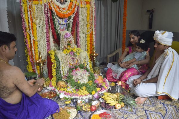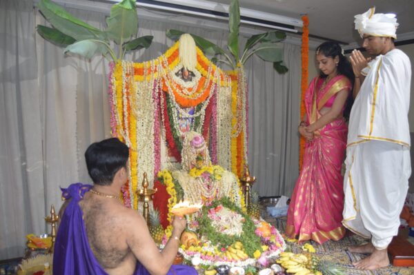 ಈ ಕಾರ್ಯಕ್ರಮವು ಬೆಳಿಗ್ಗೆ 10.00 ಗಂಟೆಗೆ ಸಂಕಲ್ಪ, ಕಲಶ ಪ್ರತಿಷ್ಠಾಪನೆ ಹಾಗು ಮಹಿಳಾ ಸದಸ್ಯರಿಂದ ದೀಪ ಬೆಳಗಿಸುವುದರೊಂದಿಗೆ ಪ್ರಾರಂಭವಾಯಿತು. ಪದ್ಮಶಾಲಿಗಳ ಪರವಾಗಿ ಸತೀಶ್ ಶೆಟ್ಟಿಗಾರ್ ಮತ್ತು ಅನುಷ ಸತೀಶ್ ಶೆಟ್ಟಿಗಾರ್ ದಂಪತಿಗಳು ಪೂಜೆಗೆ ಕುಳಿತುಕೊಂಡಿದ್ದರು. ಪುರೋಹಿತರಾದ ರಘುರಾಜ್ ಭಟ್ ಅವರು ಪೂಜೆಯನ್ನು ನೆರವೇರಿಸಿದರು.