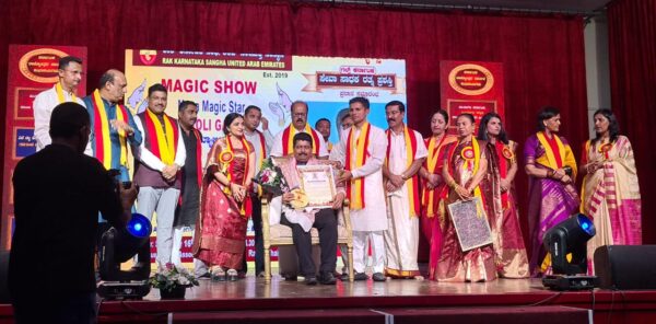 ರಾಸ್ ಅಲ್ ಖೈಮಾ ಕರ್ನಾಟಕ ಸಂಘದ ೬೯ನೇ ಕರ್ನಾಟಕ ರಾಜ್ಯೋತ್ಸವ ಸಮಾರಂಭಕ್ಕೆ ಮಂಗಳೂರಿನಿಂದ ವಿಶೇಷ ಆಗಮಿಸಿದ್ದ ಗೌರವ ಅತಿಥಿಯಾಗಿ ಮೆಗಾ ಮ್ಯಾಜಿಕ್ ಸ್ಟಾರ್ ಕುದ್ರೋಳಿ ಗಣೇಶ್ ರವರಿಗೆ “ವಿಸ್ಮಯ ಜಾದೂ ಸಾಮ್ರಟ್” ಅಂತರಾಷ್ಟ್ರೀಯ ಪ್ರಶಸ್ತಿ ಪ್ರದಾನಿಸಿ ಗೌರವಿಸಲಾಯಿತು.