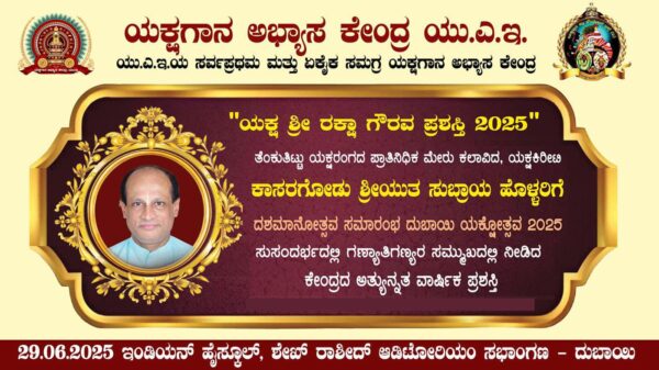 ದುಬೈ: ಹತ್ತರ ಹರುಷದ ಹೊತ್ತಿನಲ್ಲಿ ಹಿಂದೆ ತಿರುಗಿ ನೋಡಿದಾಗ…ಯು.ಎ.ಇ.ಯ ಸರ್ವಪ್ರಥಮ ಮತ್ತು ಏಕೈಕ ಸಮಗ್ರ ಯಕ್ಷಗಾನ ಅಭ್ಯಾಸ ಕೇಂದ್ರ ಎಂದು ಹೆಗ್ಗಳಿಕೆಗೆ ಪಾತ್ರವಾಗಿರುವ ಎಳೆಯ ಮಕ್ಕಳಿಂದ ಹಿರಿಯ ಹವ್ಯಾಸಿ ಕಲಾವಿದರಿಗೆ ಶಾಸ್ತ್ರೀಯ ಯಕ್ಷಗಾನ ಕಲೆಯನ್ನು ಕಲಿಸಿ, ಪರಿಪಕ್ವತೆಯನ್ನು ಸಾಧಿಸುವಲ್ಲಿ ಯಕ್ಷಗಾನ ಅಭ್ಯಾಸ ಕೇಂದ್ರ – ಯು.ಎ.ಇ. ಕಳೆದ ಹತ್ತು ವರ್ಷಗಳಿಂದ ದುಬಾಯಿಯ ಕಲಾ ತಪೋಭೂಮಿಯಲ್ಲಿ ಕಾರ್ಯನಿರ್ವಹಿಸಿಕೊಂಡು ಬರುತ್ತಿದೆ. ಪ್ರತಿವರ್ಷ ವಿವಿಧ ಕಥಾ ಪ್ರಸಂಗಗಳನ್ನು ಆಯ್ಕೆ ಮಾಡಿಕೊಂಡು ಅದ್ಧೂರಿಯಾಗಿ ಪ್ರದರ್ಶನ ಮಾಡಿಕೊಂಡು ಬಂದು ಇದೀಗ ದಶಮಾನೋತ್ಸವದ ಸಂಭ್ರಮದಲ್ಲಿರುವ ಸಾಧನೆಯ ಯಶೋಗಾಥೆಯ ವಿಶೇಷ ಲೇಖನವನ್ನು ಬಿ. ಕೆ. ಗಣೇಶ್ ರೈ – ದುಬಾಯಿ ಬರೆದಿದ್ದಾರೆ.