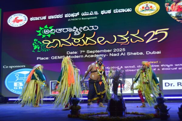 ದುಬೈ: ಕರ್ನಾಟಕ ಜನಪದ ಪರಿಷತ್ ಯುಎಇ ಘಟಕದ ವತಿಯಿಂದ ದುಬೈ ನಾದ್ ಅಲ್ ಶೀಬಾ ಜಿಮ್ಸ್ ಮಾರ್ಡನ್ ಅಕಾಡೆಮಿಯಲ್ಲಿ ಅಂತರರಾಷ್ಟ್ರೀಯ ಜನಪದ ಉತ್ಸವ – 2025” ಭವ್ಯವಾಗಿ ನೆರವೇರಿತು. ಕರ್ನಾಟಕ ಜನಪದ ಪರಿಷತ್ ಬೆಂಗಳೂರು ಅವರ ಮಾರ್ಗದರ್ಶನ ಮತ್ತು ಬೆಂಬಲದೊಂದಿಗೆ ಸ್ಥಾಪಿತವಾದ ಯುಎಇ ಘಟಕ, ರಾಜ್ಯದ ಜೀವಂತ ಜನಪದ ಪರಂಪರೆಯನ್ನು ಜಾಗತಿಕ ವೇದಿಕೆಯಲ್ಲಿ ಉಳಿಸಿ ಬೆಳೆಸುವ ಕನಸನ್ನು ಈ ಉತ್ಸವದ ಮೂಲಕ ಯಶಸ್ವಿಯಾಗಿ ಅನಾವರಣಗೊಳಿಸಲಾಯಿತು.