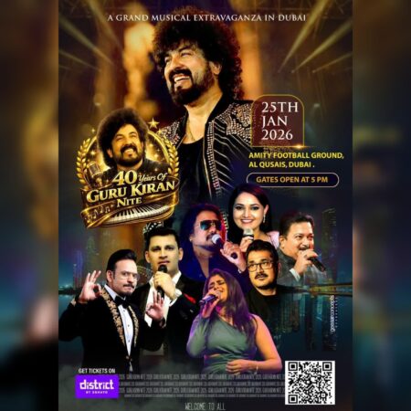 ದುಬೈ: ಇಲ್ಲಿನ ಅಲ್ ಖಿಸೆಸ್ಸ್ ಅಮಿಟಿ ಸ್ಕೂಲಿನ ಫುಟ್ಬಾಲ್ ಮೈದಾನದಲ್ಲಿ ಜನವರಿ 25ರಂದು ಕನ್ನಡ ಚಲನಚಿತ್ರ ರಂಗದ ಖ್ಯಾತ ಸಂಗೀತ ನಿರ್ದೇಶಕ ಗುರು ಕಿರಣ್ ತಂಡದಿಂದ ‘ಗುರು ಕಿರಣ್ ನೈಟ್’ ಅದ್ಧೂರಿ ಸಂಗೀತ ಕಾರ್ಯಕ್ರಮ ನಡೆಯಲಿದೆ.