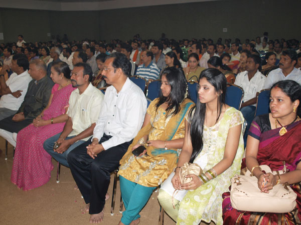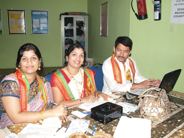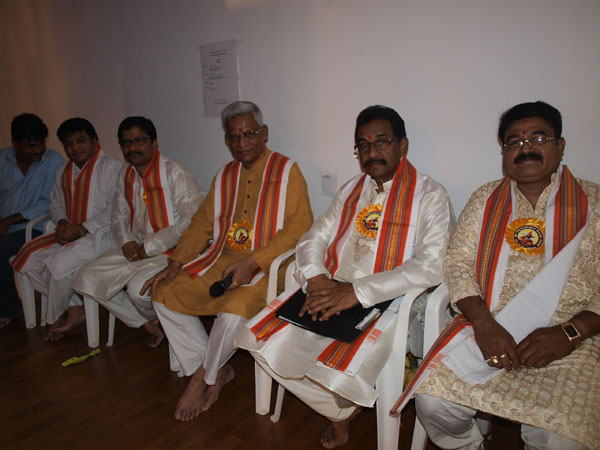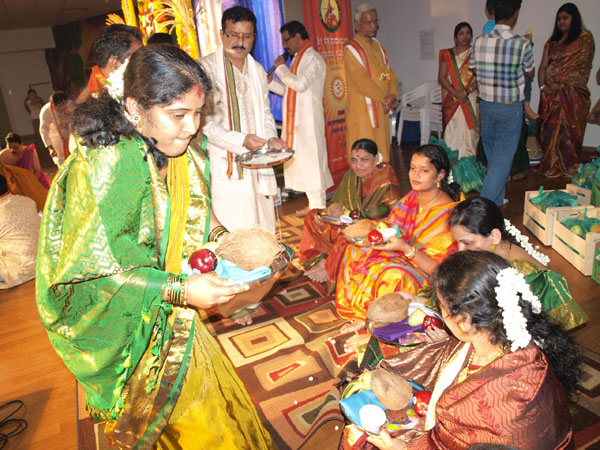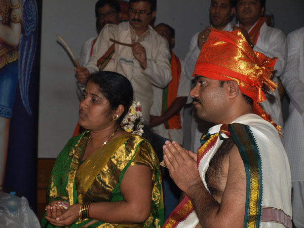 Shree Gururaj Acharya and Shreemati Pavithra Acharya sat for performing all the Pooja formalities on behalf of all the devotees and organizing committee members. Presidents of all the Sanghas, Societies, Associations, administrative officials, Sree Satyanarayana Pooja Organizing committee members and Volunteers after taking Sankalpa (Oath) rest part of the pooja rituals began.