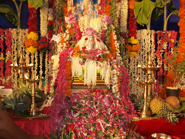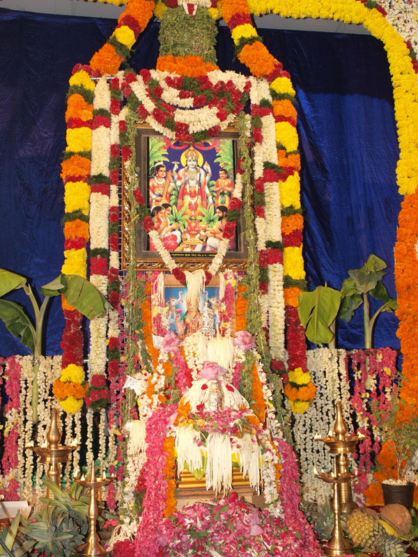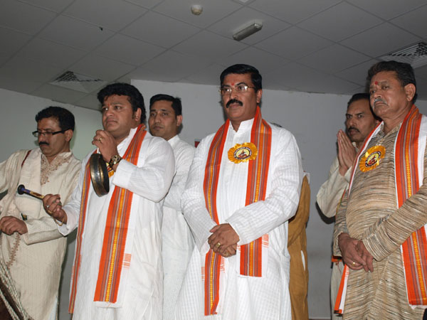 Stage for pooja was well decorated and designed beautifully with flowers by Shree Rajesh Kuthar and party.