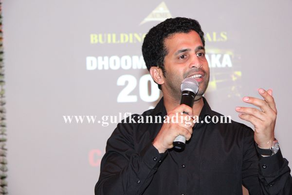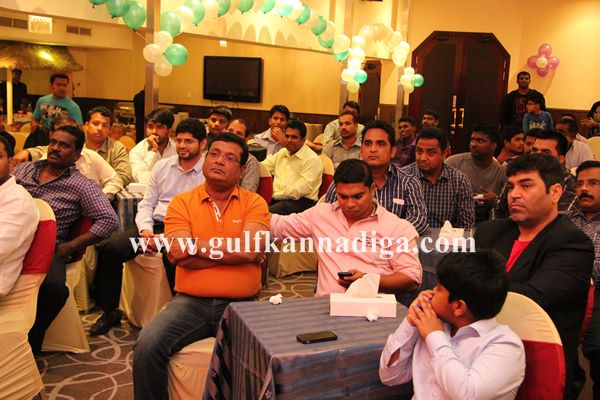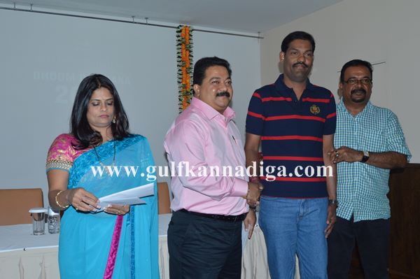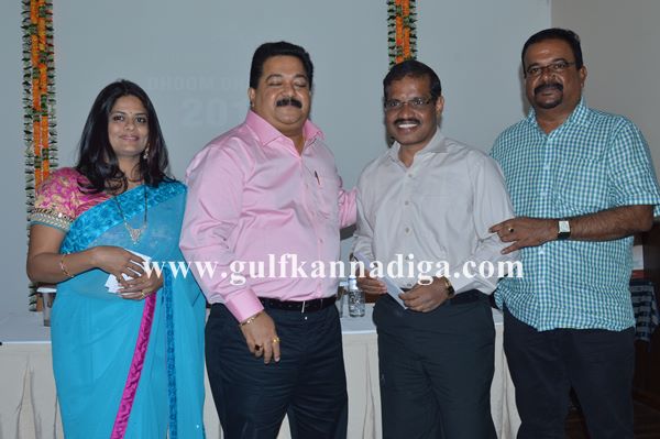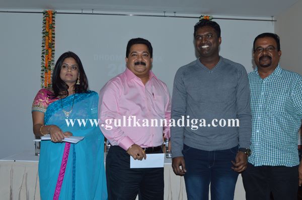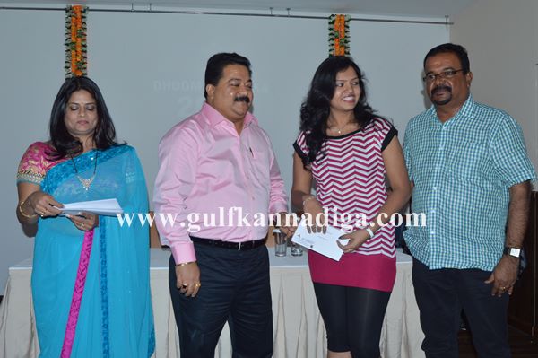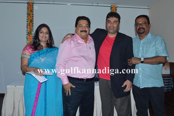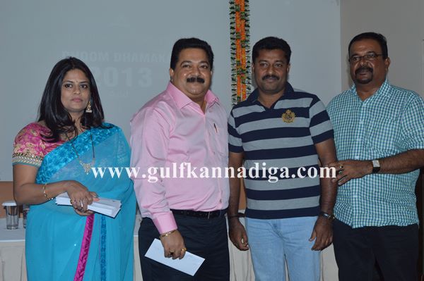 Satish venkataramana of Chilly Willy, Satish Poojary, president of Sharjah Karnataka Sangha, Herman Louis of Radio spice and Dinesh Sherigar were on the dais.