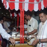 All the Pooja rituals were held meticulously under the leadership of Shri Raghu Bhat. On behalf of devotees Shree Dhanpal Shetty, Smt.Bharati Dhanpal Shetty, Shree Mahesh Shetty, Smt.Hema Mahesh Shetty, Shree Jayanand Pakkala, Smt.Jayalaxmi Pakkala couple sat in the pooja and took part in the pooja rituals. Pooja Sankalpa, Kalasha installation and rituals starts.