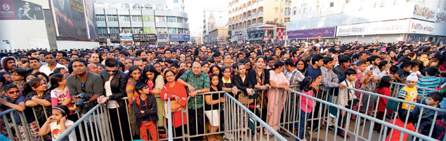 Tens of thousands of fans gathered in different parts of Dubai and Abu Dhabi to catch a glimpse of their favourite Indian stars, six of whom were flown in for the occasion, blocking roads and causing traffic pandemonium. The six stores, owned by the Kerala-based Kalyan Group, are in Meena Bazaar, Al Qusais, Karama and Bur Dubai in Dubai; in Rolla Square in Sharjah; and Hamdan Street in Abu Dhabi.