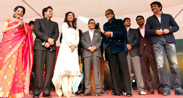 Aishwarya, clad in a maroon and cream anarkali, spoke to the cheering audience: “Thank you so much for welcoming us warmly with so much love and affection and for waiting here so patiently to greet us. It is so overwhelming. I cannot thank you enough for coming and joining us in celebrating the inauguration of this jewellery show room. I am so happy you are here to greet us and wish us all the best. I want to personally thank you once again for your time, good wishes and love for my family, my husband Abhishek (and) my daughter Aaradhya”. Apart from the Bachchans, South Indian stars Nagarjuna, Prabhu Ganesan, Manju Warrier and Shivaraj Kumar inaugurated the various showrooms across the country.