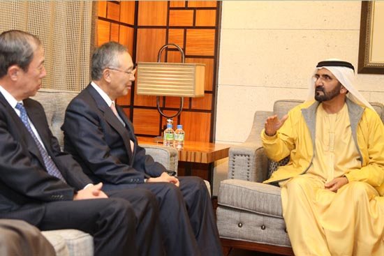 His Highness Shaikh Mohammed bin Rashid Al Maktoum, Vice-President and Prime Minister of the UAE and Ruler of Dubai, received on Monday Yoshihiko Miyauchi, CEO of Japanese Orix Group, who was accompanied by Makoto Inoue, President and Co-Chief Executive Officer.