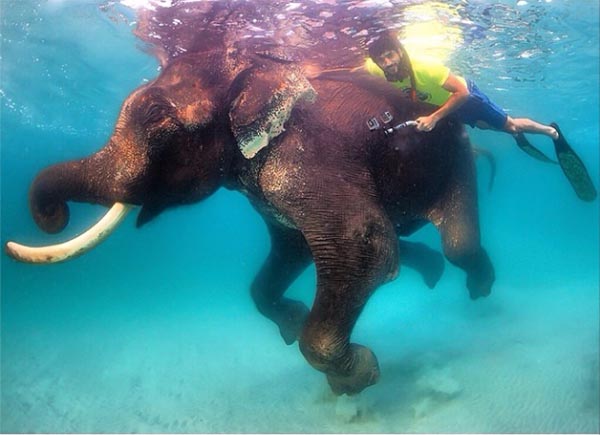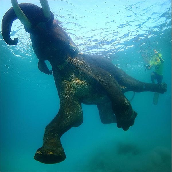 “Meet Rajan, the world’s only swimming elephant! It was such an unusual, yet incredible feeling to be diving underwater next to an elephant. Who would have ever guessed that an elephant can dive using its trunk as a snorkel, while enjoying the deep waters of the ocean. Sadly, at the age of 64, Rajan is the last of its kind and can be found nearby the Andaman Islands, swimming in the great Indian Ocean,” read a caption next to the picture.