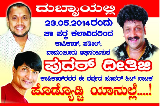UAE Tulukoota, Dubai heading towards its Silver Jubilee celebration, towards promoting tulu language and culture in UAE is bringing yet another mega event of tulu drama slated to stage on 23rd May 2014 at Shaik Rashid Auditorium, Indian High School, Dubai.