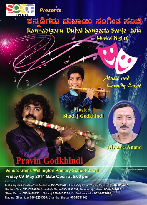 Sangeetha Sanje ( Musical Evening) by Kannadigaru Dubai in association with Scoop Events, DUBAI, has been actively involved in the promotion of cultural events in Dubai, UAE . Many cultural programs have been hosted by the organizers during the past years with resounding success.