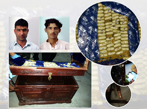 Major General Abdul Jalil Mahdi, director of drug control in Dubai, said the heroin was found concealed in five boxes and in the wooden legs of two tables. One of the two accused admitted he was in touch with drug smuggling gang members in Pakistan, and he gets instructions from them about transport, and sale of drugs by mobile phone.The second defendant admitted that he had brought the drugs into the UAE with the help of a friend living in Pakistan.(E 247)