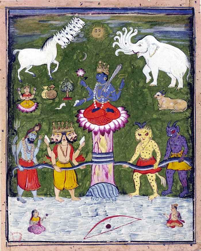 ದೇವಾಸುರರ ‘ಸಮುದ್ರ ಮಂಥನ’ದ ಕಾಲದಲ್ಲಿ ಕ್ಷೀರ ಸಮುದ್ರದಿಂದ ಉದಿಸಿದ ಹದಿನಾಲ್ಕು ರತ್ನಗಳಲ್ಲಿ ಐದು ಕಲ್ಪವೃಕ್ಷಗಳು ಹುಟ್ಟಿದವೆಂದು ಪ್ರತೀತಿ ಇದೆ. ಅವುಗಳೆಂದರೆ ಪಾರಿಜಾತ,(ದೇವಕುಸುಮ) ಮಂದಾರ, ಸಂತಾನ, ಕಲ್ಪವೃಕ್ಷ, ಹರಿಚಂದನಗಳಾಗಿವೆ. ಸುರಭಿ ಮತ್ತು ವಾರುಣಿಯ ನಂತರ ಜನಿಸಿದ ಪಾರಿಜಾತವನ್ನು ದೇವತೆಗಳು ದೇವೇಂದ್ರನಿಗೆ ಕೊಟ್ಟರು. ಕೃಷ್ಣಾವತಾರದ ಕಾಲದಲ್ಲಿ ಕೃಷ್ಣನು ದೇವಲೋಕದಿಂದ ಪಾರಿಜಾತ ಗಿಡವನ್ನು ತಂದು ಸತ್ಯಭಾಮೆಯ ಅಂಗಳದಲ್ಲಿ ನೆಡುತ್ತಾನೆ. ಅದರ ಹೂವುಗಳು ರುಕ್ಮಿಣಿಯ ಅಂಗಳಕ್ಕೆ ಬೀಳುತ್ತಿದ್ದು, ಈ ಪ್ರಸಂಗದಲ್ಲಿ ಸತ್ಯಭಾಮೆಯಲ್ಲಿನ ಅಹಂಕಾರ ನಿರ್ಮೂಲವಾಯಿತು ಎನ್ನವುದು ಪುರಾಣದ ಸ್ವಾರಸ್ಯಕರ ಕಥೆ.