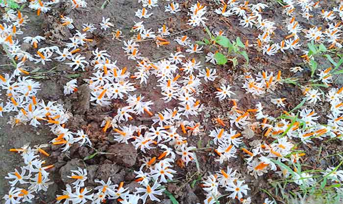 8.ಹಿಂದೆ ಪಾರಿಜಾತದ ಕೆಂಪು ತೊಟ್ಟಿನಿಂದ ಬಟ್ಟೆಗೆ ಹಾಕುವ ಕಾವಿ ಬಣ್ಣವನ್ನು ತಯಾರಿಸುತ್ತಿದ್ದರು.