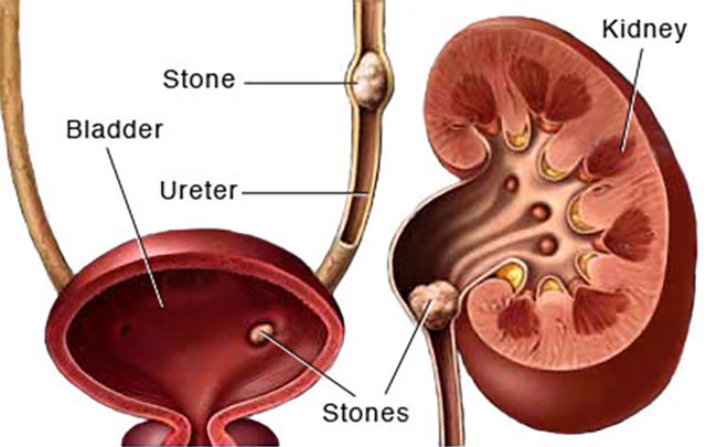 * ಮೂತ್ರದಲ್ಲಿ ಕೆಲವೊಮ್ಮೆ ರಕ್ತವೂ ಕಾಣಿಸಿಕೊಳ್ಳಬಹುದು.