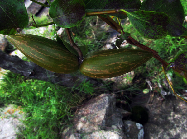 ಹಸಿರು ಬಣ್ಣದ ನೀಳವಾದ ನುಣುಪಾದ ಕಾಯಿಗಳು ಪರ್ಯಾಯ ಮಾದರಿಯಲ್ಲಿ ಜೋಡನೆಗೊಂಡಿದ್ದು ನೋಡಲು ಮೀಸೆ ಆಕಾರದಲ್ಲಿ ಕಾಣುವುದರಿಂದ ಮೀಸೆಕಾಯಿಕಾಯಿ ಗಿಡ ಎನ್ನಲಾಗಿದೆ ಈ ಕಾಯಿಗಳು ಒಣಗಿದ ಬಳಿಕ ಇದರ ಒಳಗೆ ಬಿಳಿಯ ರೇಷ್ಮೆಯಂತಹ ಕೂದಲುಗಳಿಂದ ಕುಡಿದ ಪುಟ್ಟ ಪುಟ್ಟ ಬೀಜಗಳಿರುತ್ತವೆ.