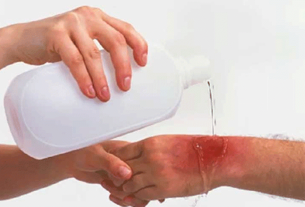 ಯಾವುದೇ ರೀತಿಯ ಗಾಯಗಳಾದರು ತಕ್ಷಣ ನೀರನ್ನು ಹರಿಯ ಬಿಟ್ಟು ಅದರಲ್ಲಿ ಸುಟ್ಟುಹೋದ ಭಾಗವನ್ನು ಹಿಡಿಯಬೇಕು. ಈ ರೀತಿಯಾಗಿ 5 ರಿಂದ 10 ನಿಮಿಷ ಹಿಡಿಯಬೇಕು ನಂತರ ಐಸ್ ನಿಂದ ಮೆಲ್ಲನೆ ಉಜ್ಜಬೇಕು.