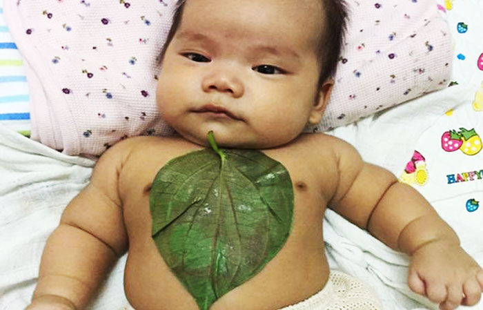 ಬೆಚ್ಚಗಾದ ಎಲೆಗಳನ್ನು ಮಗುವಿನ ಹೊಟ್ಟೆಯ ಭಾಗದಲ್ಲಿ ಅಂಟಿಸುತ್ತಾ ಬನ್ನಿ..
