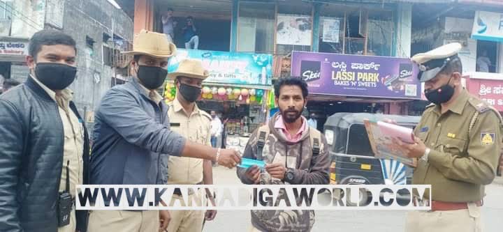 ಈ ನಿಟ್ಟಿನಲ್ಲಿ ಮಂಗಳವಾರ ಗೋಣಿಕೊಪ್ಪ ಪೊಲೀಸರು ಗೋಣಿಕೊಪ್ಪ ನಗರದಲ್ಲಿ ಮಾಸ್ಕ್ ಧರಿಸದೇ ನಿರ್ಲಕ್ಷ್ಯದಿಂದ ಓಡಾಡುತ್ತಿದ್ದ ವ್ಯಕ್ತಿಗಳಿಗೆ ದಂಡ ವಿಧಿಸಿದ್ದು ಅಲ್ಲದೆ ಉಚಿತ ಮಾಸ್ಕನ್ನೂ ಸಹ ವಿತರಿಸಿ ಸಾರ್ವಜನಿಕರಲ್ಲಿ ಜಾಗೃತಿ ಮೂಡಿಸಿದರು. ಈ ಕಾರ್ಯವು ಸಾರ್ವಜನಿಕರ ಮೆಚ್ಚುಗೆಗೆ ಪಾತ್ರವಾಗಿದೆ.