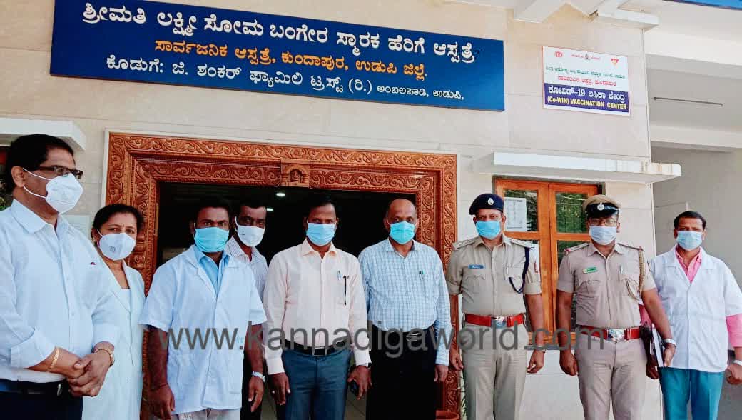 ಕುಂದಾಪುರ ಉಪವಿಭಾಗಾಧಿಕಾರಿ ರಾಜು ಕೆ. ಪ್ರಥಮವಾಗು ಕೋವಿಡ್ ಲಸಿಕೆ ಪಡೆದರು. ಕುಂದಾಪುರ ಡಿವೈಎಸ್ಪಿ ಶ್ರೀಕಾಂತ್ ಕೆ., ತಾಲೂಕು ಪಂಚಾಯತ್ ಕಾರ್ಯನಿರ್ವಹಣಾಧಿಕಾರಿ ಕೇಶವ ಶೆಟ್ಟಿಗಾರ್, ಕುಂದಾಪುರ ನಗರ ಠಾಣೆ ಪಿಎಸ್ಐ ಸದಾಶಿವ ಗವರೋಜಿ ಮತ್ತಿತರರು ಕೋವಿಡ್ ಲಸಿಕೆ ಪಡೆದರು.