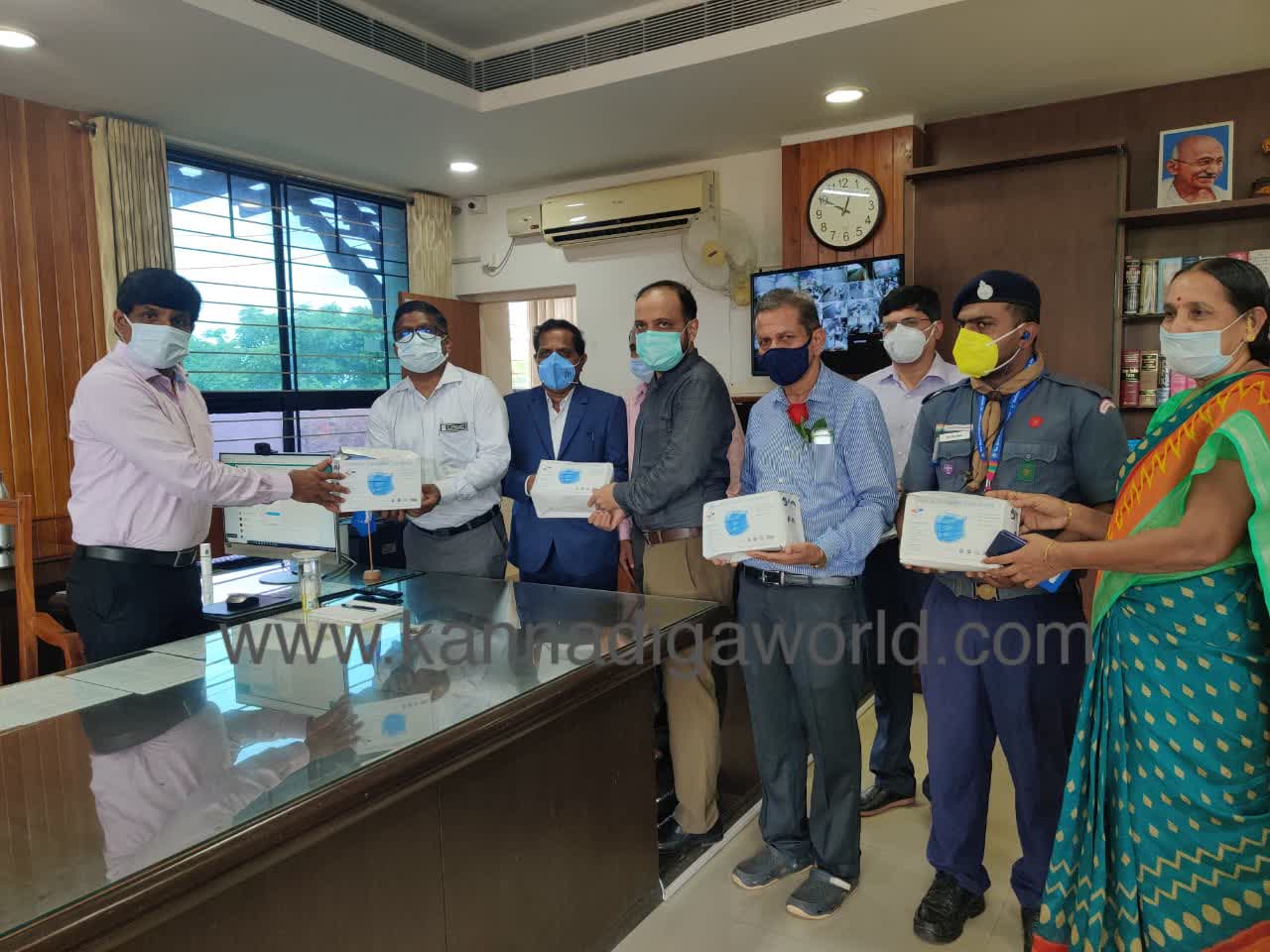 ಶುಕ್ರವಾರ ಕಸ್ತೂರ್ಬಾ ಆಸ್ಪತ್ರೆಯ ವೈದ್ಯಕೀಯ ಅಧೀಕ್ಷಕ ಡಾ. ಅವಿನಾಶ ಶೆಟ್ಟಿಯವರು ಮಾಸ್ಕ್’ಗಳನ್ನು ಉಡುಪಿ ಜಿಲ್ಲಾಧಿಕಾರಿ ಜಿ. ಜಗದೀಶರವರಿಗೆ ಹಸ್ತಾಂತರಿಸಿದರು.
